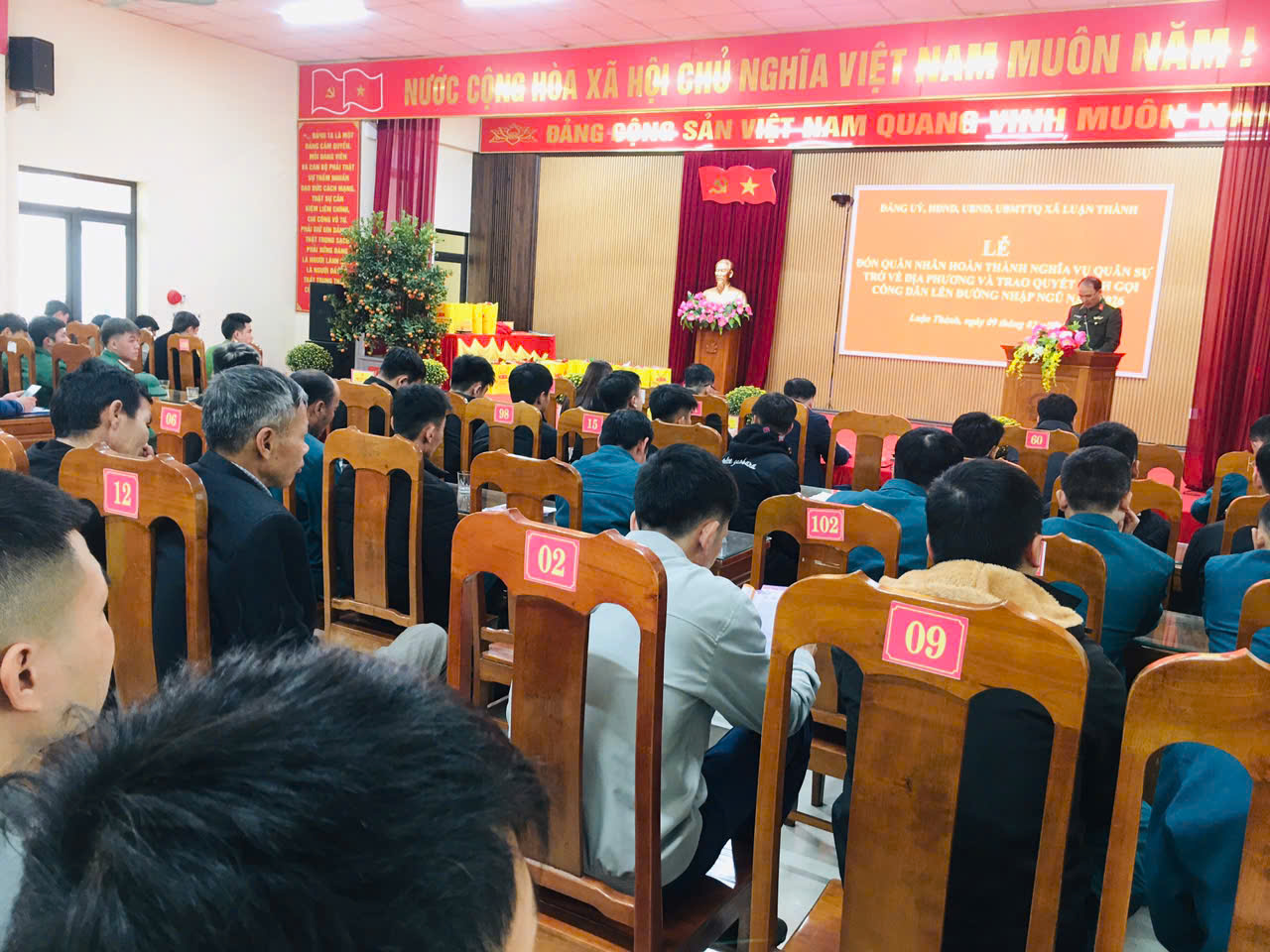 Phát biểu tại buổi lễ, lãnh đạo xã mong muốn các thanh niên trúng tuyển nghĩa vụ quân sự tiếp tục phát huy truyền thống quê hương Luận Thành, chấp hành nghiêm kỷ luật Quân đội, nỗ lực học tập, rèn luyện, hoàn thành tốt mọi nhiệm vụ được giao; đồng thời tin tưởng các quân nhân xuất ngũ sẽ tiếp tục phát huy phẩm chất “Bộ đội Cụ Hồ”, tích cực lao động, sản xuất, tham gia phát triển kinh tế – xã hội, giữ gìn an ninh trật tự tại địa phương.